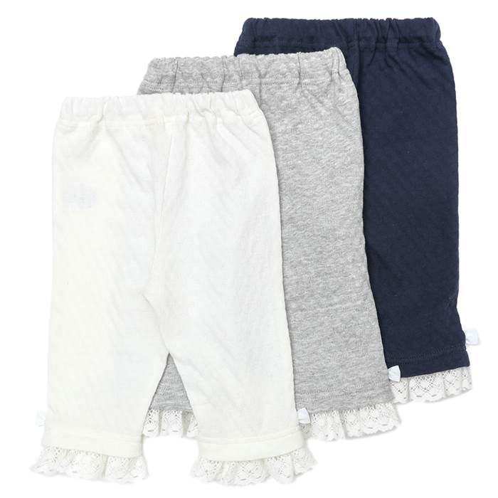 アイテム:スパッツ・レギンス サイズ:80/90/95/100/110/120/130 素材:足口レース部分/綿97%・ポリエステル3% オフホワイト・ネイビーブルー…本体/綿96%・ポリエステル4% グレー…本体/綿97%・ポリエステル3% スカラップ天竺×シフォン×レース ■商品サイズ(商品の仕上がり寸法です) 表示(cm)809095100110120130 ウエスト幅20202021222324 腰幅25262727293032 股上19191919192122 股下18212425293337 足口幅10111111121314 ※股下は裾レース部分を含んだ長さになります。