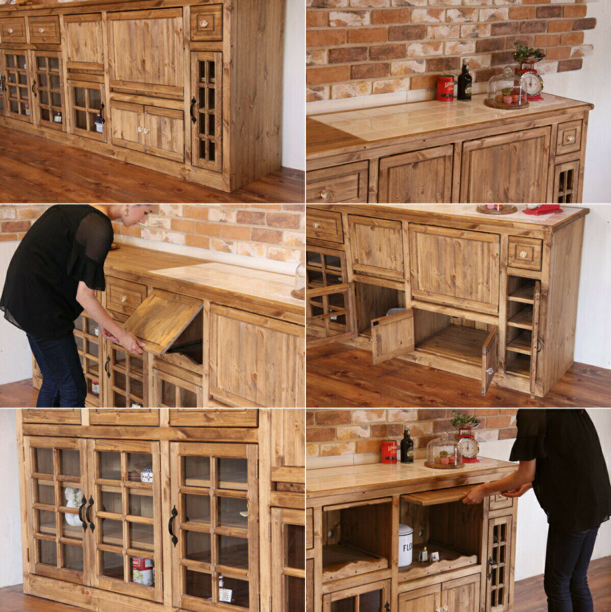 ■商品名 ワイドキャビネット・フラップ扉付き・W2400 ■送料 送料サービス (北海道、沖縄、一部離島はお見積もり) ■サイズ 幅2400 奥行き450 高さ850mm ・引き出し内寸(左側3杯) 幅300/奥行き310/高さ145mm ・ガラス扉内内寸(左観音扉) 幅730/奥行き400/高さ485mm 可動板2枚 ・ガラス扉内内寸(左から2つ目片開き扉) 幅350/奥行き400/高さ485mm 可動板3枚 ・ガラス扉内内寸(左から3つ目片開き扉) 幅350/奥行き400/高さ320mm 可動板なし ・フラップ扉(小:左側) 開口:幅350/高さ250mm スライドレール内有効寸法 幅325/高さ285mmm ・フラップ扉(大:右側) 開口:幅520/高さ335mm スライドレール内有効寸法 幅500/高さ365mm ・木観音扉内内寸 幅520/奥行き400/高さ240mm 可動板なし ・右端引き出し内寸 幅120/奥行き310/高さ120mm ・ガラス扉内内寸(右端) 幅170/奥行き400/高さ505mm 可動板3枚 ・天板タイルスペースサイズ 幅1200/奥行き400 ■材質 北欧パイン ■カラー 合計8色からお選びください。